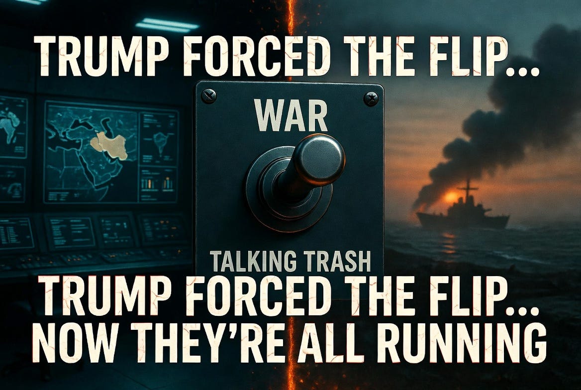 Trump called the bluff. Israel forced Trump’s hand. Operation Rising Lion sabotaged Geneva diplomacy and triggered the escalation sequence. Trump struck Iran February 28, 2026, killing Supreme Leader Khamenei and decapitating Iranian leadership. The machine immediately flipped. Democrats who voted for war authorization condemned the execution. NATO allies who spent decades demanding action suddenly discovered diplomacy had not been exhausted. European leaders who approved $100 billion for Ukraine refused to send destroyers to Hormuz. The flip was instant because the calculation was cold. This war cannot be turned into a profit center. Therefore this war must be opposed. Now Trump threatens apocalypse tonight while NATO watches from the sidelines, having abandoned the war they spent 47 years building.